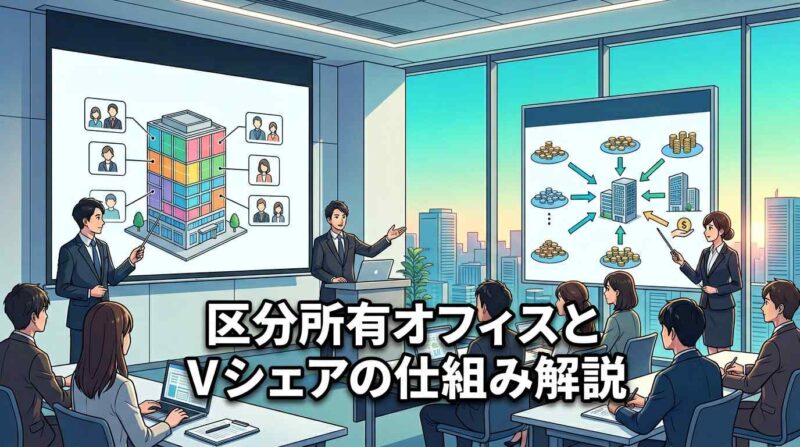 Vシェアは不動産特定共同事業法に基づく共同所有型の小口化商品で、1口100万円から5口(500万円)以上で参加でき、都心プライムエリアの中規模オフィスに分散投資できる設計になっています。