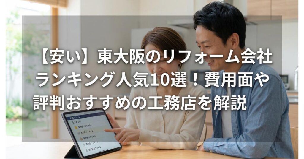 【安い】東大阪のリフォーム会社ランキング人気10選!費用面や評判・おすすめの工務店を解説