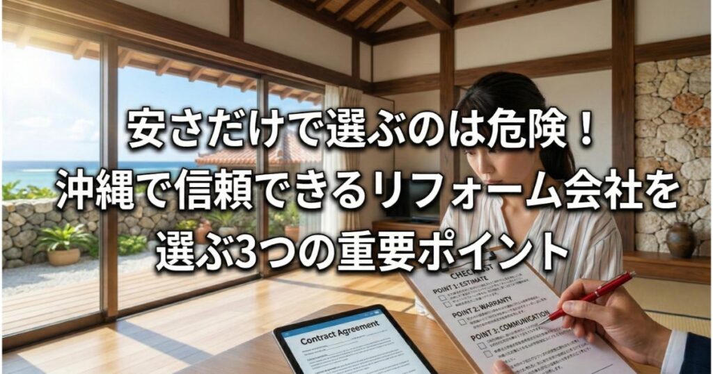 安さだけで選ぶのは危険!沖縄で信頼できるリフォーム会社を選ぶ3つの重要ポイント